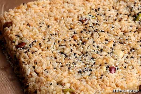 用鍋鏟壓緊,壓緊後撒上芝麻,然後放凉,放凉後再切成小塊,就可以吃了,吃不完的用密封袋儲存起來,平時當小吃來吃也非常不錯,又脆又香,隔壁鄰居都聞著香味來買,大米除了煮米飯吃,原來還可以做成這樣的小吃,又香又好吃,平時還可以炸米鍋巴,也是非常美味的。