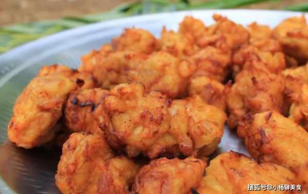 香蕉去皮後,用勺子把香蕉搗碎,然後再把切好的洋葱放進搗碎的香蕉裏,再加入適量的鹽、辣椒、麵粉和成麵團,然後再分成小團,鍋裏再次放油,油熱後,把麵團放進油鍋裏,炸至金黃後撈出來。