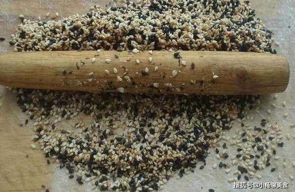 做這道美食,首先需要準備一些食材,白芝麻和黑芝麻,不但能讓美食更好看,也會讓美食的口感變得更香,芝麻準備好後,鍋裏放少許的油,然後把白芝麻和黑芝麻倒進鍋裏炒香後撈出來,然後用擀麵杖把芝麻擀碎一點,然後裝碗裏備用。