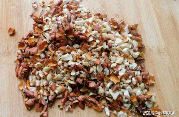 除了芝麻,還需要準備一些堅果,比如花生、瓜子米、核桃、南瓜籽等,然後同樣把自己喜歡吃的堅果倒進油鍋裏炸至酥脆後撈出來,土豆去掉皮,然後再把煎好的堅果用擀麵杖擀碎,堅果的種類可以根據自己喜好來準備,然後再把擀碎的堅果放碗裏備用。