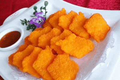 有人說"滕州八大碗"來源於春秋時期的孟嘗君,菜式為金雞,銀鯉,銅肘,玉卵,穌菜,豆腐,辣醬和清炒,其中穌菜很多食客沒有吃過,就是將蔬菜放入沸油中炸一下,然後趕快撈出來,用這種手法處理的菜,不僅保存了菜的營養價值,而且此菜入口酥軟,別有一份風味。