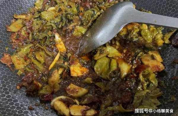 接下來就可以炒調料了,鍋裏放油,放入薑蒜爆香,然後放入酸菜調料包炒香,再加入一勺豆瓣醬,如果不喜歡吃辣椒的朋友可以不加豆瓣醬,純酸菜也非常好吃,鍋裏的調料炒香後,放入切好的大葱段,最後加入適量的水燒開。