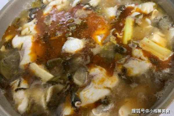 如果沒有調料包,用自家泡的酸菜也是可以的,自己泡的酸菜味道會更好一些,鍋裏的酸菜湯燒開後,就可以放入魚肉了,在放魚肉的時候,首先把魚頭放進鍋裏煮一下,然後再放入魚骨,最後放入魚片,由於魚肉非常容易煮熟,所以魚片最後放,否則會被煮爛掉。