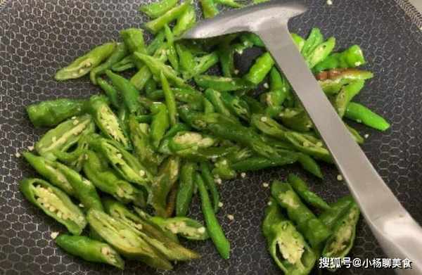 接下來斜著把辣椒切成段備用,辣椒切好後,在把準備好的瘦肉切成片,切瘦的時候,一定要斷著紋路切,這樣炒出來會好吃一些,瘦肉切好後,放進碗裏,不用加澱粉和任何調料,鍋裏放適量的油,把切好的辣椒放進鍋裏炒斷生,然後放入適量的鹽炒均勻後出鍋備用。