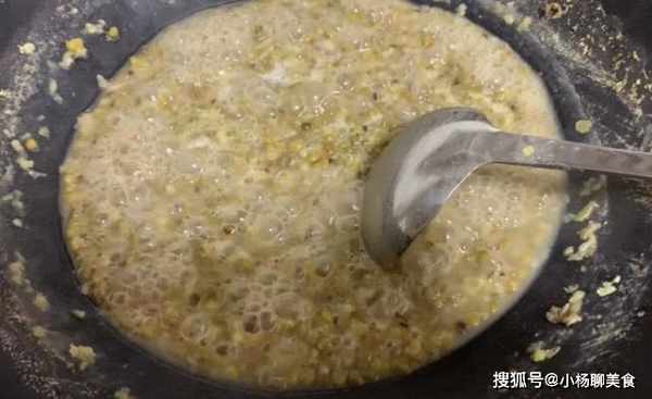 綠豆煮好後,鍋裏還有一些水,再放入適量的冰糖,把冰糖煮化後,鍋裏的水也差不多快煮幹了,然後再把攪拌均勻的牛奶倒進鍋裏,由於有糯米粉,所以倒進鍋裏後,要不停的攪拌,以免糯米粉結塊,然後就可以關火了,如果喜歡吃得比較甜,還可以放入一些白糖攪拌均勻,糖的多少就根據自己的口味來放。