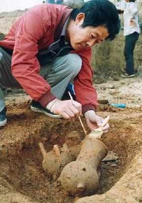 經過清洗和修補後,折斷的七根陶足又被復位,可是看到復位的陶足,專家們都愣住了——因為現在說那七根陶棍是陶足,就是一個想當然的錯誤。