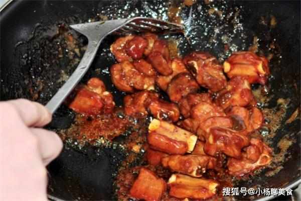 3、炒糖色是一大難題,新手直接用油炒糖色,把握不住火候,很容易把糖色炒糊,這樣排骨下鍋就浪費了,用水炒糖色是新手必備的技巧。