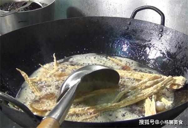 1、腐竹必須經過油炸吃起來才香,炸制表面冒泡即可撈出。