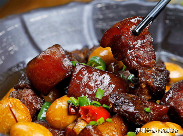 這樣燉出來的鵪鶉蛋紅燒肉,色香味俱全,看起來是紅潤透亮的,吃起來是香甜綿糯又勁道的,吃一塊滿口生香,妙不可言,鵪鶉蛋的搭配恰到好處,吃起來外皮焦香有嚼頭,裡面是香嫩潤滑的口感,吃一個也非常美味。