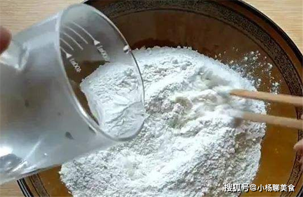 和麵的時候有技巧,水要轉著圈加入麵粉中,邊倒水邊用筷子攪拌,把麵粉攪拌成絮狀即可。這樣和麵最好,避免一次性把水全部倒入麵粉中,水量對了還要加麵粉,結果越活越多。