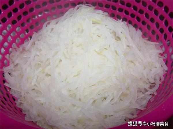 蘿蔔絲切好後焯水40秒鐘(熱水下鍋),撈出後瀝幹水,捏幹水分,加少許鹽調味,適量食用油鎖住水分,和雞蛋碎、蝦米、粉絲混合均勻,即可調味。調味的時候這"2味"不要放,一定要切記。