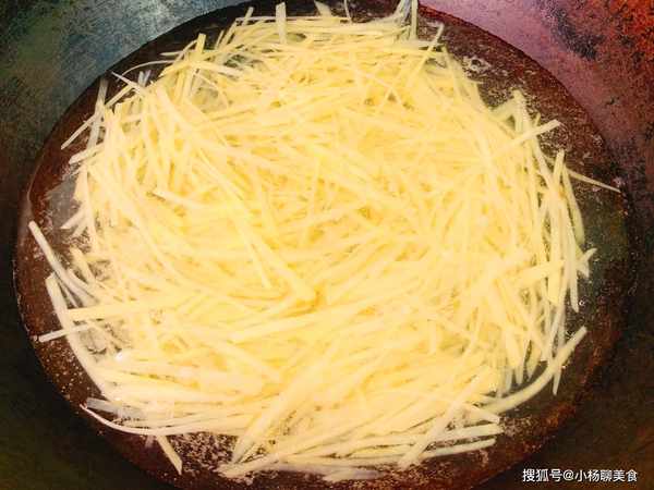 1.炒土豆絲時,很多都是將洋芋泡在水中,其實這是不對的,我們需要將切好的土豆絲用流水清洗乾淨,然後放入到熱水中煮20秒,這1步能使土豆絲表面的澱粉全部溶解這水中,而且水中還加了食鹽和醋,土豆絲吸收了醋的酸味,這樣我們在炒土豆絲時,洋芋肯定不會粘鍋,而且吃著還會更入味!