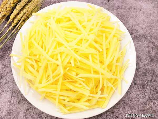 1.先將洋芋削皮,然後清洗乾淨切成細絲,接著將切好的土豆絲用流水清洗2遍備用。切好的土豆絲一定要用流水清洗2遍,這樣就能完全的去除土豆絲表面的澱粉。