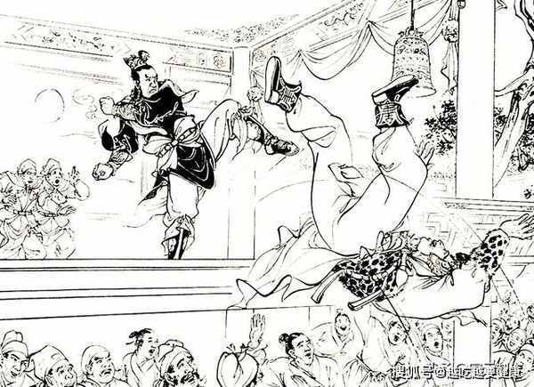 如果是平時韓昌根本不是他的對手,楊七郎現在的狀態勉强鬥了二三十個回合,一個不留神被韓昌打於馬下,眼看鋼叉要紮向楊七郎而來。這時楊六郎飛奔而來救下了楊七郎。