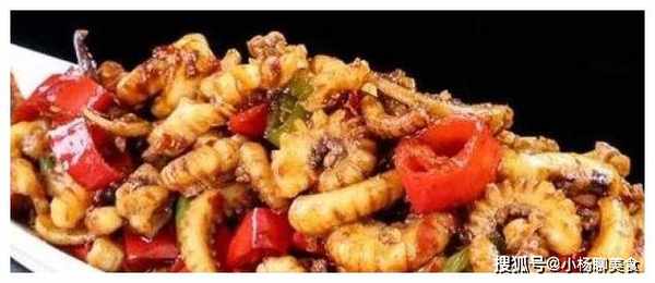 資料:水發魷魚1只、洋葱1/4個、生薑3片、豆瓣醬3、生抽3ml、料酒3ml、水澱粉適量、鹽適量、幹辣椒1個
