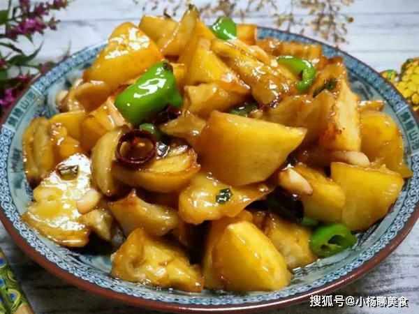 3、鍋裏多加一些油,油熱,下洋芋油炸至表面微黃撈出控油。