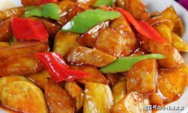 資料:洋芋、茄子、青椒、油、醬油、糖、鹽、蔥花、蒜末、生粉、高湯各適量