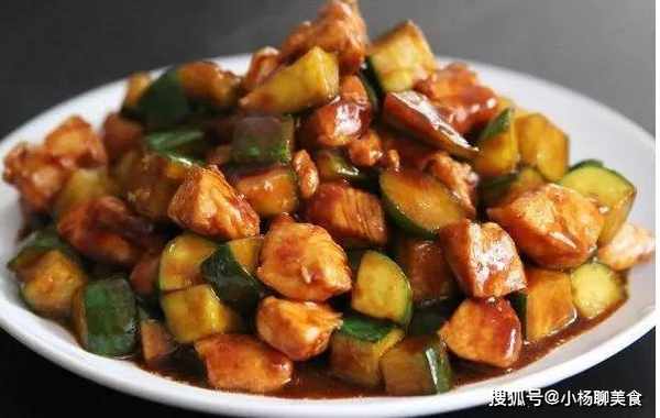 5、倒入雞丁,快速翻炒半分鐘讓醬汁均勻沾在雞肉上,下黃瓜丁繼續炒約20秒即可。