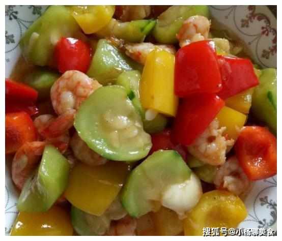資料:蝦仁、紅黃彩椒、黃瓜、油、料酒、鹽、味精;