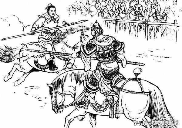 隨著伍天錫的步步緊逼,伍雲召一直用挑、攔、掄盡力防守,他想找個機會退出讓給這個好勝的堂弟。沒想到伍天錫越殺越歡,雖然沒有拼殺之意卻也是越殺越緊,伍雲召只有無奈地選擇了自己新改的槍招,他趁著伍天錫一