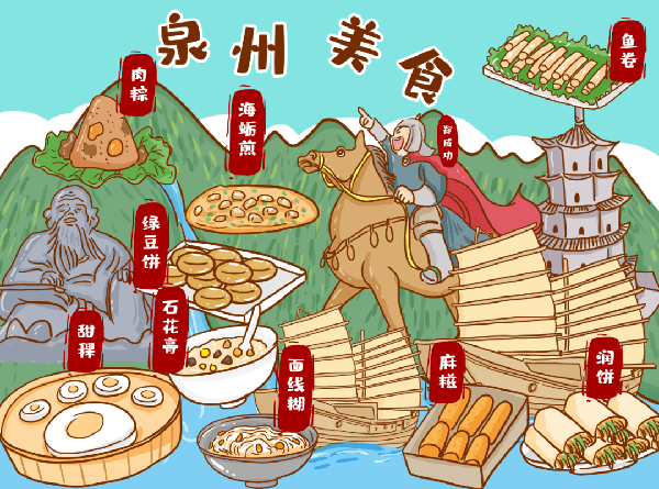 (3)道地的泉州蚵仔麵線糊,還可以加入豬大腸、魚丸等配料,早餐時也常搭配油條一起食用。