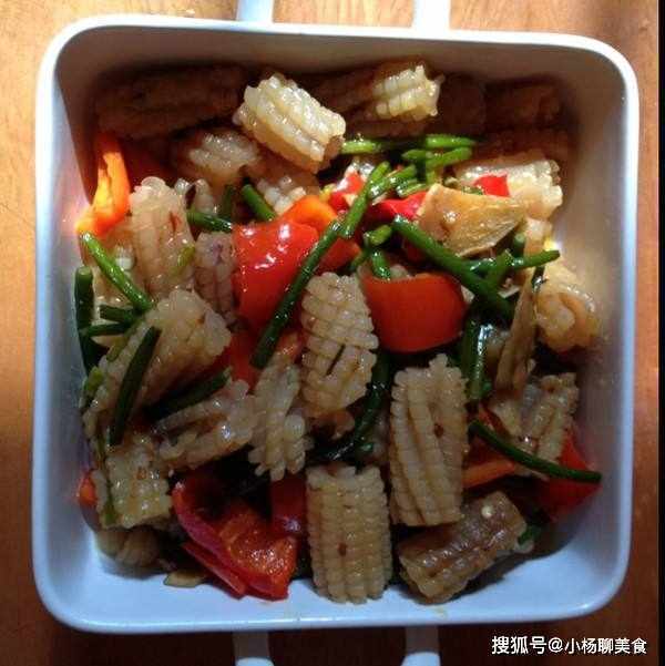 1.鮮魷魚撕去黑膜,洗淨,切成片,放入盆內,加入燒熱的溫水燙一下,撈出,瀝去水分;2.猪瘦肉切成粒;3.鍋內加少許油燒至五成熱,加入猪瘦肉粒,煸幹,起鍋備用;4.蒜苗(青蒜)洗淨,切成段;5.泡紅辣椒剁細,薑切末;6.鍋內加油燒至六成熱,放入泡紅辣椒末、薑末炒香,加雞湯、蒜苗段、鹽、生抽、胡椒粉、紅糟汁,燒入味至熟,加猪瘦肉粒濕澱粉勾芡,推勻,加入鮮魷魚片,用勺推動,加雞精、香油、醋,迅速起鍋裝盤即可。