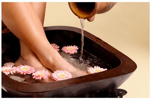 進行中藥沐足前,需將藥材放入藥煲中加水3000毫升煎取汁1000毫升,將藥汁倒入沐足桶中,加水兌開,至水溫約45℃為宜,浸泡雙足,水位應超過脚踝關節10釐米,可配合足部按摩,並另備熱水壺,適時加入熱水保持水溫。沐足時間一般不超過30分鐘,沐足後應立即擦乾雙腳,並注意足部保暖。有心臟病或素體虛弱者,沐足時間一般不宜超過10分鐘。糖尿病人末梢感覺較差,沐足時應注意水溫情况,以免燙傷。凡足部皮膚有瘡瘍、皮疹、外傷者,不宜沐足。