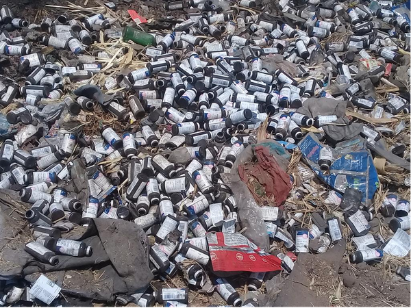 在辛巴威首都大街小巷,原本缺乏公共衛生管理的雜草中,可以看到琳琅滿目的止咳糖漿瓶。