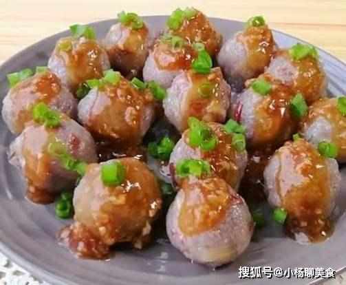 6.20分鐘到了,取出丸子.把剛剛調好的料汁,淋在丸子上就可以了.撒點蔥花點綴一下,就做好了.(如果是喜歡吃辣的也方便,加點辣椒醬。)
