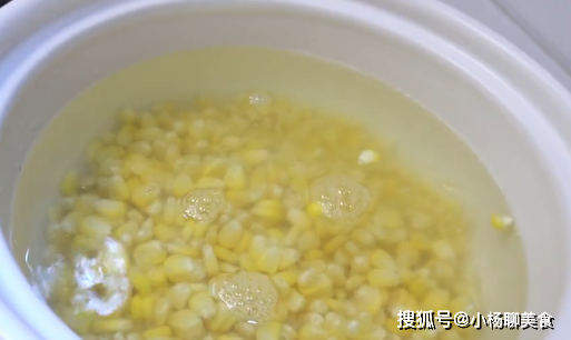 鍋裏加水,水燒開後,倒入剝好的玉米粒,煮8分鐘左右就可以了。