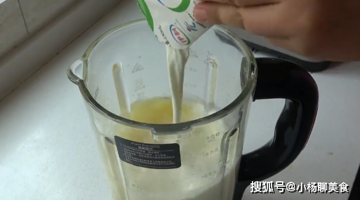 煮好後,把玉米粒連同水一起倒入到料理機裏,(如果家裡有破壁機而且帶自動加熱功能,玉米就不用煮,如果破壁機不帶加熱功能,建議將玉米粒先放清水中煮熟,再用破壁機攪打)再倒入一袋純牛奶。