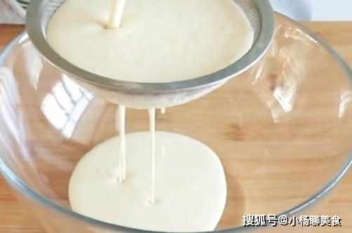 打好的米漿,用細篩過濾一下,這樣米漿會更細膩,口感會更好。