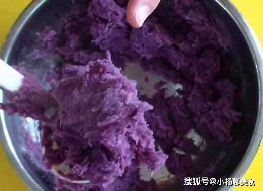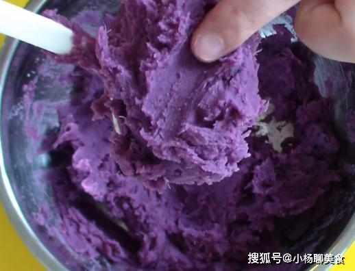 壓出的紫薯泥特別幹,需要加入適量的牛奶,加了甜牛奶後,更香更軟糯;但也不要和得過於稀了哈!像圖片狀就可以了。