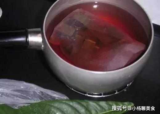 5、將枇杷葉子水倒出,此時還是茶色的,過一會兒就變成酒紅色,帶著淡淡的枇杷葉子的清香,煮出的水當成日常茶飲,止咳化痰效果很好。