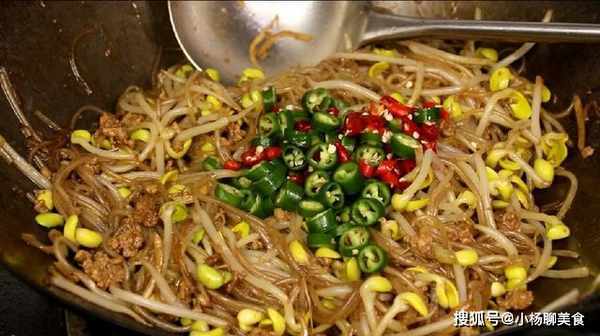 【食材】:五花肉,豆芽,粉條,青辣椒,紅辣椒,葱,薑,幹辣椒,生抽,醬油,鹽,雞精,白糖,蚝油