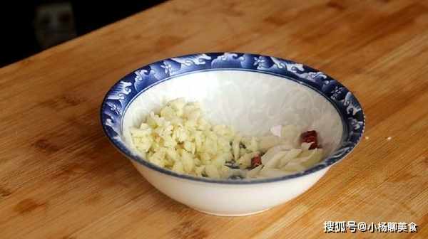 3、葱切成片,幹辣椒切段,將大蒜拍碎剁成末,盛入碗中備用