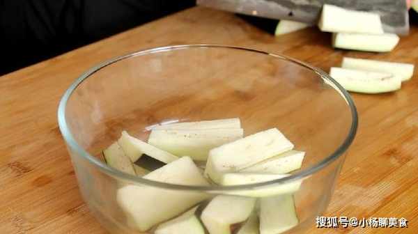 1、將茄子切成長條之後用鹽煞一下水分,這樣不僅可以有效去除茄子的水分,同時還可以保證茄子不發黑,做出來的茄子不變色