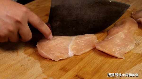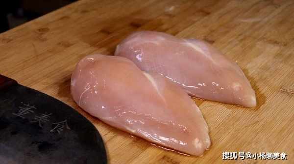 1、準備兩個性感的雞胸肉,將雞胸肉從中間分開,一分為二
