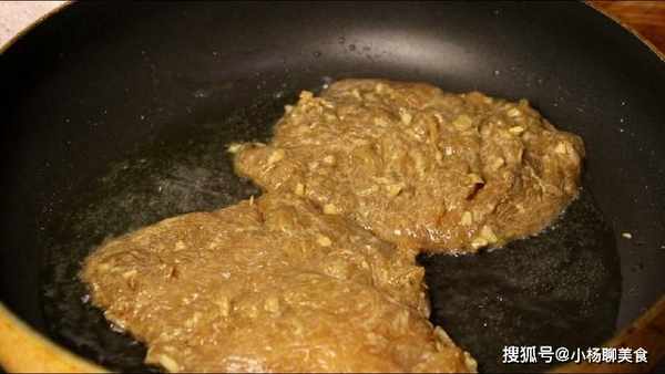 4、平底鍋放入油,油熱放入雞胸肉,小火慢慢煎,給它翻一下麵