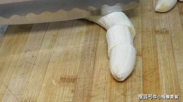 1、我們先將香蕉剝去皮,然後將香蕉切成小段備用,一個香蕉大約切成4段左右即可