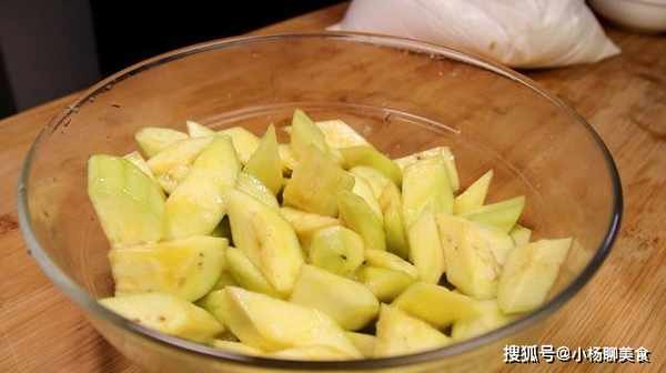 1、處理茄子:茄子去蒂,然後削皮,將茄子一分為四,切成斜刀,將茄子盛入碗中備用