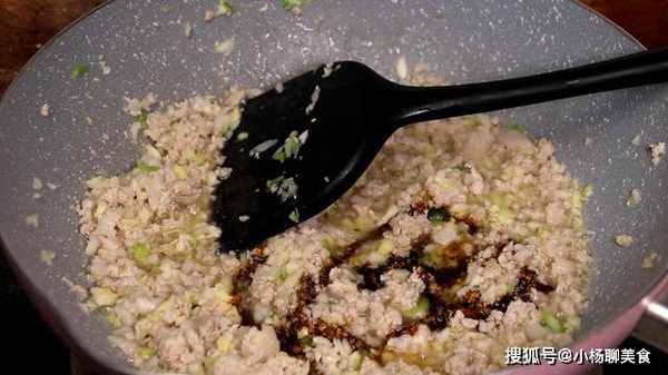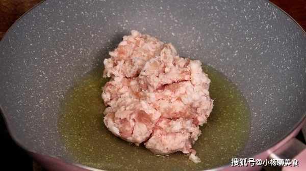 2、炒肉沫的時候油溫不要太高,不然不容易炒開,