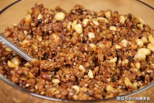 10、少放點鹽,少來點雞精,白糖,少量的蚝油,最後放入花生碎,白芝麻,翻炒均勻炒一下