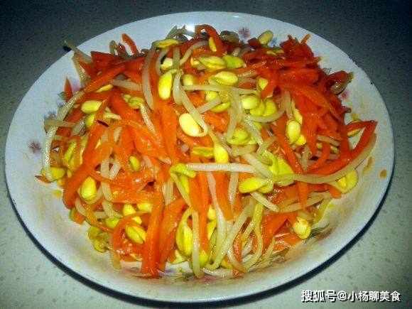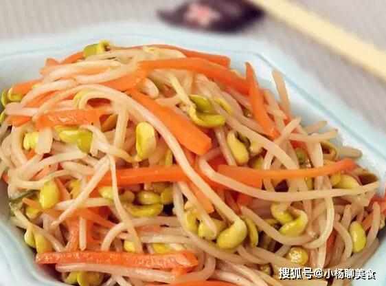 胡蘿蔔的清脆可口,黃豆芽的清爽,食用後能够改善視力,又能消除人體的疲勞,有利於利尿排毒,另外,經常吃點黃豆芽還能排毒素,幫助快速的排便,一盤按時上廁所,是减肥的好食材。