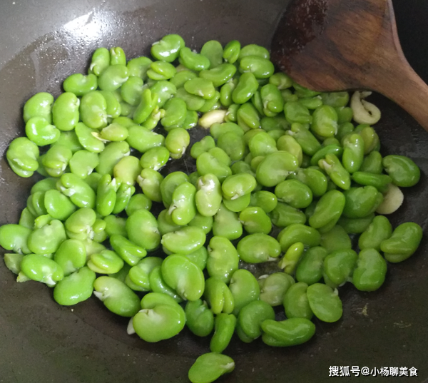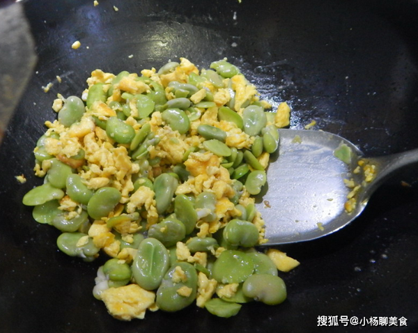 4,然後,鍋中放些食用油,把蠶豆倒入鍋中,快速的翻炒到斷生,放上雞蛋進去,加入調味料,炒到食材入味,就可以裝盤了。