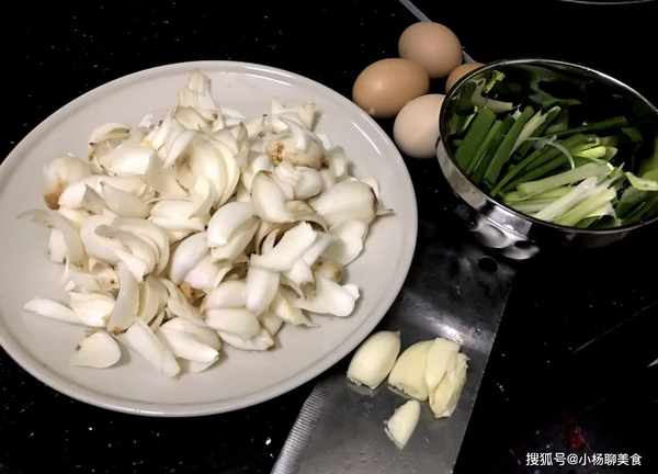 說起百合炒雞蛋,一道營養價值高,口感獨特的美食,我們先把需要的原材料備好,百合,雞蛋,鹽,胡椒粉,食用油,大蒜。