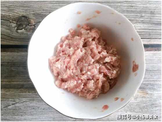 第一步:將肉末取出放入碗中,加入2克胡椒粉,10克料酒和玉米澱粉攪拌均勻,醃制備用。