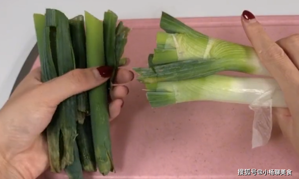 1、把新鮮的大葱摘掉爛葉部分,一定要摘除乾淨,然後將大葱根部也去除,爛葉去掉之後,我們把大葱切成三段,葱葉、葱汁和葱根。
