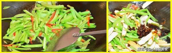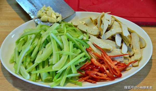 剝取四片芥菜梗(約300克)、豆干三片(約200克)、辣椒一條、蒜瓣兩個、海鮮醬半小碟(XO醬、沙茶醬、蔭豉等都可思考替代)。