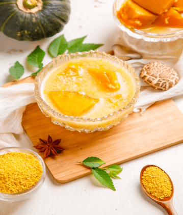 (3)待粥煮好後,把南瓜泥倒入小米粥中,充分攪拌混合即可。